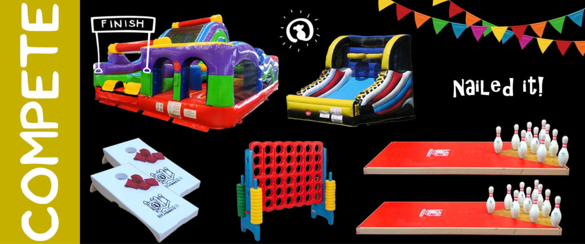 FOWLING | OBSTACLE COURSES | INFLATABLE GAMES | BACKYARD GAMESFowling (football bowling) rentals, inflatable obstacle course rentals, as well as a load of other inflatable and non-inflatable sports and interactive game rentals, too! From backyard events to large community events, we've got you covered! |